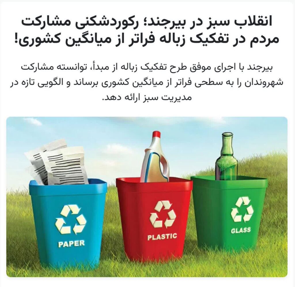 انقلاب سبز در بیرجند:رکوردشکنی مشارکت مردم در تفکیک زباله فراتر از میانگین کشوری